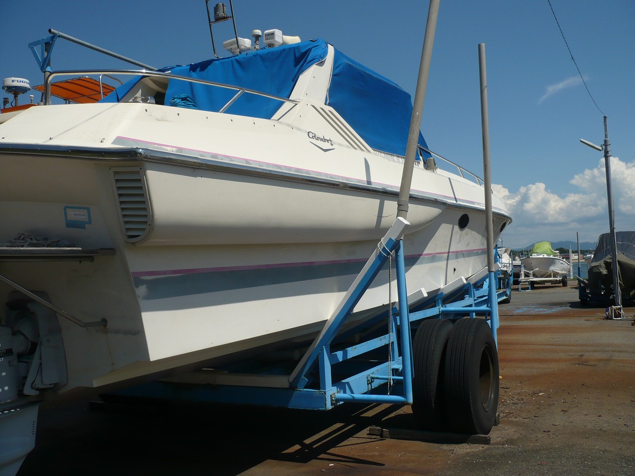 新艇・中古艇情報 【中古艇】コロンボ41(イタリア) 価格 ASK円(税込価格) 使用年数 種別 クルーザー 保管状態 マリーナ陸置 用途 レジャー 航行区域 沿海区域 総トン数 7.3トン 定員 12名 艇種 メーカー BLUE SHORE41 SPECIAL 船体材料 FRP 長さ・幅・深さ 長さ:10.69m幅:3.00m深さ:1.95m 主機 ボルボAD41/DP×3機 補機 エンジン種類 ボルボディーゼル 据付方式 ドライブ式 燃料タンク容量 600L 船速 進水日 H7年2月8日新造 艤装内容 ◇個室トイレ ◇ギャレー ◇レンジ ◇ベッド ◇シャワー室 ◇ソファー ◇GPS魚探、ウインチ、サーチライト現状オプション品 仕様 備考 ☆JCI検査有効期間:H32年6月29日まで ☆現地/現状渡し、ノークレーム/ノーリターンでお願い致します。 この艇についてのお問合せ