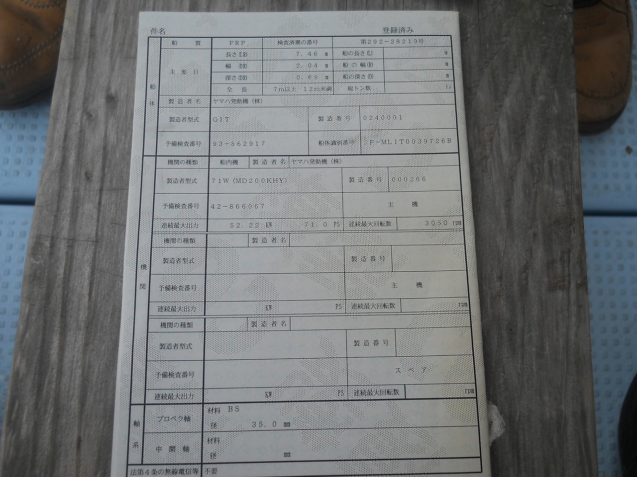 新艇・中古艇情報 【中古艇】ヤマハDY-29 価格 応談円(税込価格) 使用年数 種別 漁船 保管状態 係留 用途 遊漁船 航行区域 沿海 総トン数 5t未満 定員 5名 艇種 ヤマハDY-29 メーカー ヤマハ 船体材料 FRP 長さ・幅・深さ 長さ:7.46m幅:2.04m深さ:0.69m 主機 ヤマハMD200KHY 補機 エンジン種類 ディーゼル 据付方式 シャフト 燃料タンク容量 200L 船速 未定 進水日 艤装内容 ◆マロール動力操舵機 ◆GPS魚探 ◆ローラー/ウインチ ◆オーニング(前後部)SUS ◆キャビン両サイドSUS手すり ◆アンカーローラー台(木)2 仕様 遊漁船 備考 アワメーター(エンジン)使用時間:1949H JCI検査有効期間:H29年12月19日まで この艇についてのお問合せ